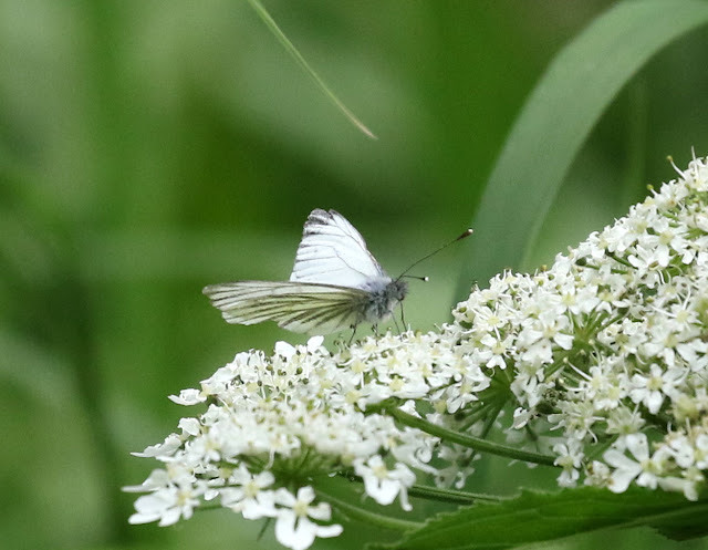 Along the earlier part of the canal we heard and saw several Yellowhammers and a Chiffchaff, and a Reed Warbler. There was no sign of any Sedge Warblers here or elsewhere along the canal we traversed. In the afternoon a Whitethroat was busy collecting insects in the area. There were families of young Great Tits, Blue Tits and Moorhen during the walk. Blackcaps serenaded us during certain parts of the walk. Baby Wrens were heard, and Goldcrests sang but remained under cover. We saw three different pairings of Bullfinches, but only one of these was visible after lunch.