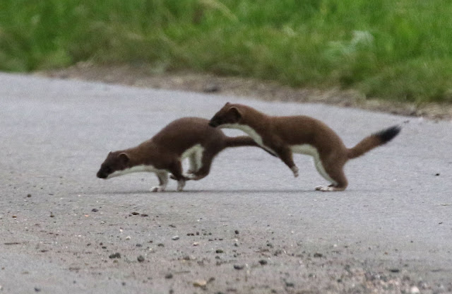 On the return journey the Stoat family was playing merrily in the road, so I was able to pull up and Ben took some more photos.