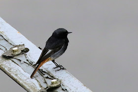 About a month ago I was alerted by a message on social media about a pair of Black Redstarts in the City of Culture. I made enquiries and was directed to a less than salubrious area of the city. I was given precise directions, but I actually came across the pair about a quarter of a mile nearer to the parking area than the directions stipulated. I first saw the female, but she soon made herself scarce. Later, the singing male was more obvious as he sang from a few prominent song posts, all of them incredibly industrial-looking. It seemed impossible to observe the bird in attractive surroundings, but then that is something you don't really expect in the UK.