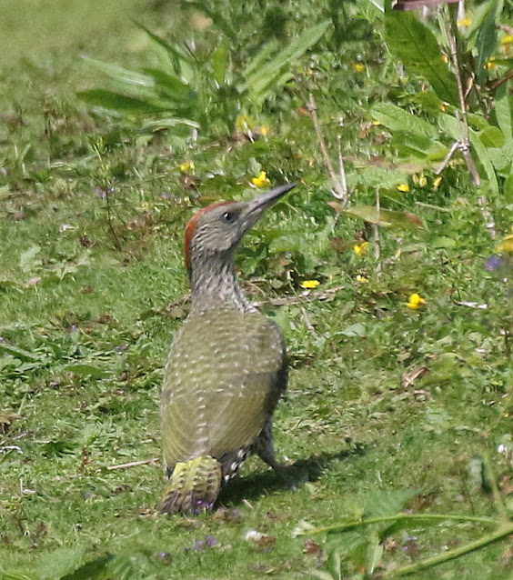 It’s been a week of coruscating heat, as anyone living in the UK must have realised. On Wednesday the afternoon group met in the shady car park of Barlow Common. Everything seemed fine, but then we reached the sun-kissed meadow. The flowers were absolutely stunning again, but it was noticeable that the Lady’s Bedstraw had started to die back. A whole stand of yellowish Wild Parsnip was something we failed to spot last week. One welcome addition was an immature Woodpecker on the path in front of us. Luckily, it stayed long enough for everyone to get a good view. The birds were very similar to last week.